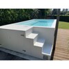 De All-In plunge pool is voorzien van een trap en indien gewenst een zit- of liggedeelte. U kunt zelf aangeven wat voor bank en/of trap u wilt en waar u deze geplaatst wilt hebben. Tegen meerprijs is zelfs een extra zitbank leverbaar.